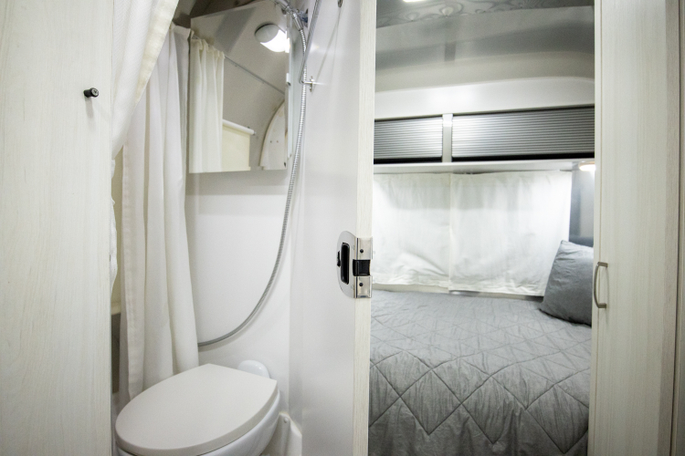 This trailer is intended for adventurous travelers that want a lightweight and cozy trailer. The convertible dinette bed allows for sleeping up to 4 people. At 3500 lbs and 16′ long, it’s the easiest trailer to tow in our fleet. Mid-size SUVs and trucks are fully capable of pulling the Bambi®.