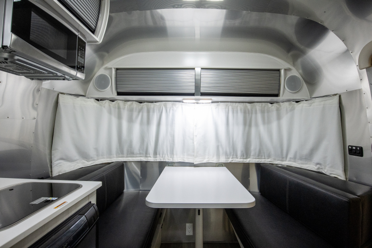 This trailer is intended for adventurous travelers that want a lightweight and cozy trailer. The convertible dinette bed allows for sleeping up to 4 people. At 3500 lbs and 16′ long, it’s the easiest trailer to tow in our fleet. Mid-size SUVs and trucks are fully capable of pulling the Bambi®.
