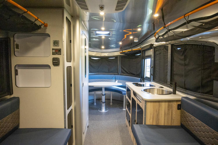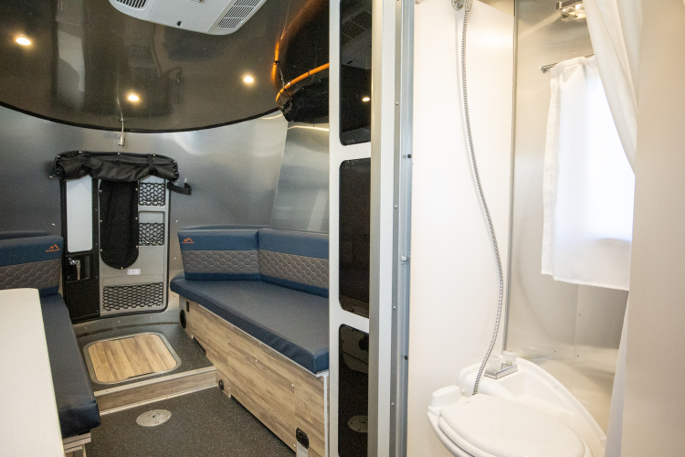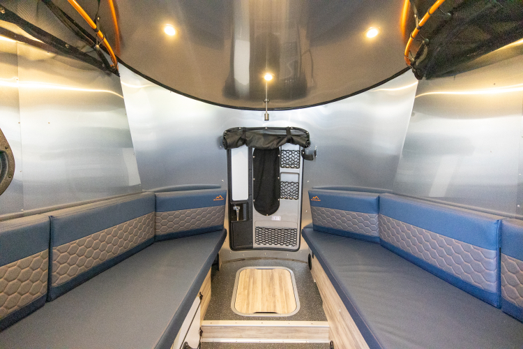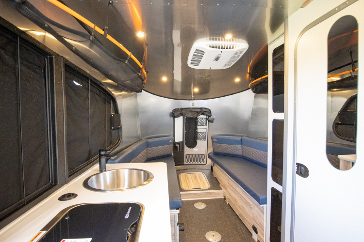 The 20′ Basecamp X® is one of our newest trailers. It packs a full set of accommodations with an AC, furnace, convertible couch/bed, refrigerator, freezer, wet bath, hot water heater, sink and stove.