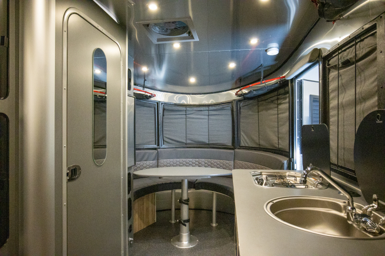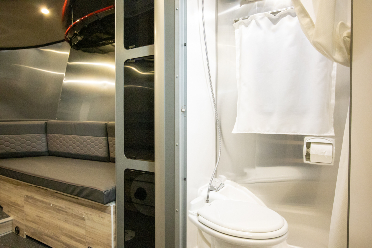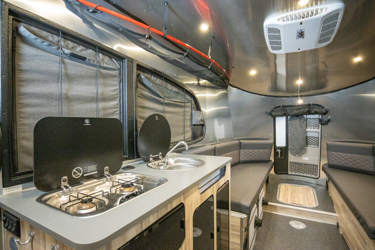 The 20′ BasecampX A is one of our newest trailers. It packs a full set of accommodations with an AC, furnace, convertible couch/bed, refrigerator, freezer, wet bath, sink, hot water heater and stove.