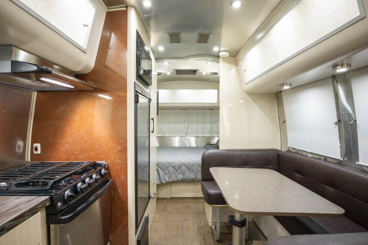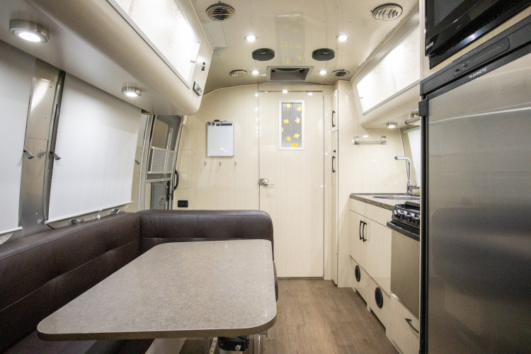 The 23′ International™ is a medium size trailer that offers a large comfortable bed, cozy dinette, and fully enclosed bathroom. The dinette can convert also into a full size bed.