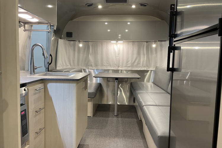 The 25′ Flying Cloud® is a large trailer that offers flexibility for families or friends with two twin beds and a bunk bed. The dinette and couch can each convert into a full size bed.