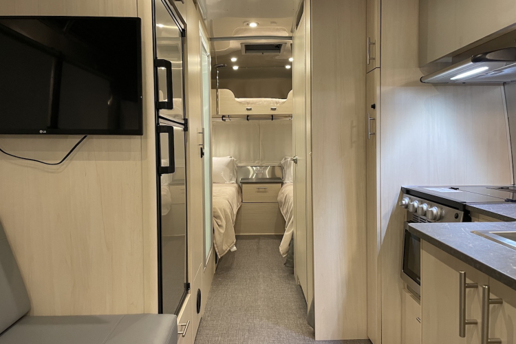 This trailer is excellent for families of 4-5, allowing kids to have their own sleeping space with a TV. In addition, the larger water tanks make this an ideal trailer for extended camping without hookups.