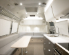 The 30′ Globetrotter is our newest and largest trailer. A queen-sized bed, full-size bed, lounge couch, long dinette, light wood interior, light grey upholstery, microwave convection oven, and electric-powered awning makes this one of the most premium travel trailers ever built.